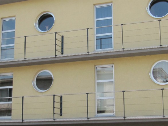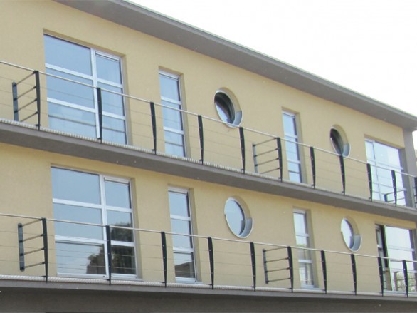 Het concept voor dit appartementsgebouw verwijst naar het uitzicht van een passagiersschip.